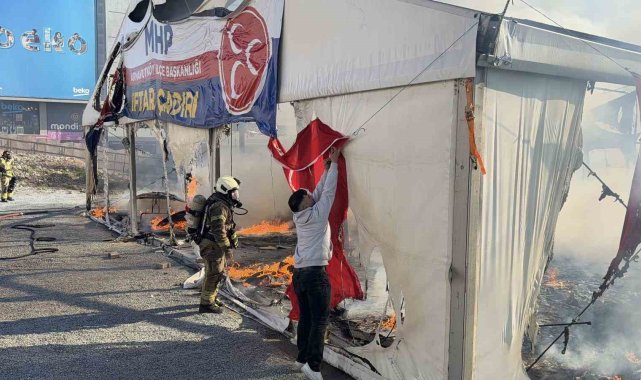 İstanbul'un Arnavutköy ilçesinde Milliyetçi Hareket Partisi'ne (MHP) ait iftar çadırında çıkan yangın paniğe neden oldu. Çok sayıda itfaiye bölgeye sevk edildi.Olay, Arnavutköy Merkez'de bulunan Eski Edirne Asfaltı Caddesi üzerinde meydana geldi. Edinilen bilgilere göre, MHP'ye ait iftar çadırında henüz bilinmeyen bir nedenle yangın çıktı.İhbar üzerine olay yerine çok sayıda itfaiye ve polis ekibi sevk edildi. Polis ekipleri yangının çıktığı bölgede güvenlik önlemi alırken, itfaiye ekipleri alevlere müdahale ederek yangını kontrol altına almak için çalışma başlattı.Yangının ilk çıkış anları cep telefonu kamerasına yansırken, yangın sırasında çadırın etrafında asılı bulunan Türk bayrakları ve Milliyetçi Hareket Partisi'ne ait bayrakların yanmaması için vatandaşların bayrakları topladığı görüldü.İtfaiye ekiplerinin müdahalesiyle yangın söndürülürken, polis ekipleri yangının çıkış nedenine ilişkin inceleme başlattı.