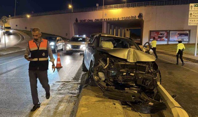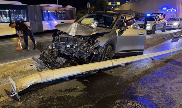 Arnavutköy'de otomobil direğe çarptı: 2 yaralı