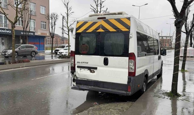 Arnavutköy'de park halindeki minibüse çarpan sürücü yer değiştirip kaçtı