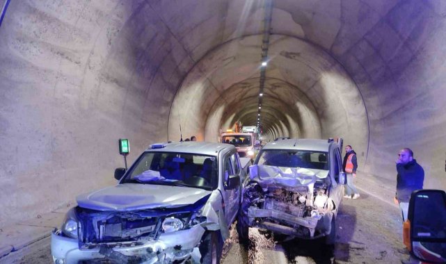 Artvin-Erzurum karayolunun 7. kilometresindeki tünelde, iki kamyonetin çarpışması sonucu 7 kişinin yaralandığı kazanın güvenlik kamerası görüntüleri ortaya çıktı.Kaza, 27 Nisan'da Artvin-Erzurum kara yolu üzerindeki 4 kilometrelik tünelde meydana geldi. Edinilen bilgilere göre, Yusufeli istikametinden Artvin yönüne seyreden Mehmet Ş. idaresindeki Artvin Orman İşletme Müdürlüğü'ne ait 08 DE 524 plakalı kamyonet, tünel içinde şerit ihlali yaparak karşı yönden gelen Ali Fuat Beyaz'ın kullandığı 08 ABB 956 plakalı kamyonetle çarpıştı.Kazada sürücüler Mehmet Ş. ve Ali Fuat Beyaz ile araçlarda bulunan Orhan Bıyıklı, Şenol Aydemir, Murat Özmen, Doğan Ülker ve Seçkin Özay yaralandı. İhbar üzerine olay yerine sağlık ekipleri sevk edilirken, yaralılar ilk müdahalelerinin ardından Artvin Devlet Hastanesi'ne kaldırıldı.Yaralıların hayati tehlikelerinin bulunmadığı öğrenilirken, kazayla ilgili inceleme başlatıldı. Kazanın tünel içindeki güvenlik kamerasına yansıyan görüntülerinde, sürücü karşı şeride geçtiği ve karşı yönden gelen araçla çarpıştığı anlar yer aldı.