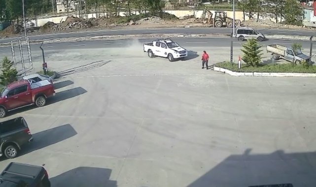 Artvin'in Hopa ilçesinde bir akaryakıt istasyonu çalışanı, kontrolden çıkan bir kamyonetin çarpması sonucu yaralandı. Kaza anı güvenlik kamerasına yansıdı.Alınan bilgiye göre, Hopa ilçe merkezinde bulunan bir akaryakıt istasyonunda görevli Yüksel Gaz, istasyon girişinde yol kenarında beklediği sırada sürücüsünün direksiyon hakimiyetini kaybettiği bir kamyonetin çarpması sonucu yere savruldu. Çevredekilerin hemen yardıma koştuğu Gaz, olay yerine gelen 112 Acil Sağlık ekipleri tarafından Hopa Devlet Hastanesi'ne kaldırıldı. Yaralı akaryakıt istasyonu çalışanı tedavisinin ardından taburcu edildi.O anlar güvenlik kamerasına saniye saniye yansıdı. Görüntülerde, Yüksel Gaz'ın istasyon önünde beklediği sırada üzerine gelen aracın çarpması ve çarpmanın etkisiyle savrulması yer alıyor.