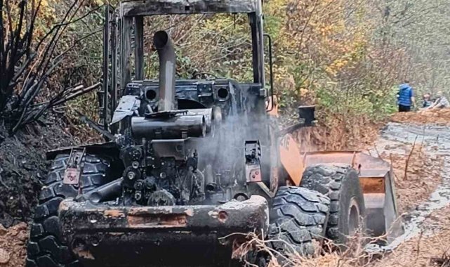 Artvin'in Borçka ilçesinde bir iş makinesi yanarak kullanılamaz hale geldi. O anlar ise cep telefonu kamerasına yansıdı.