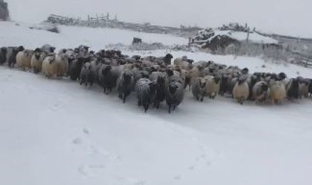 Artvin'in Şavşat ilçesinin yüksek kesimlerinde etkili olan kar yağışı yaylalarda bulunan çobanlara zor anlar yaşattı. Çobanlar sürülerini otlatabilmek için mezralara inmek zorunda kaldı.
