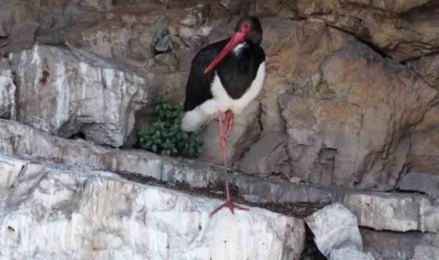 Artvin'in Ardanuç ilçesi Cehennem Deresi Kanyonu'nda kayalıklarda dinlenen kara leylek, dron kamerası ile görüntülendi.