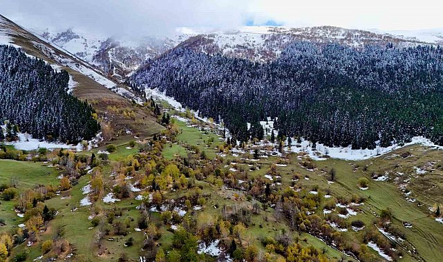 Artvin'de karlı zirveler sonbahar ile buluştu