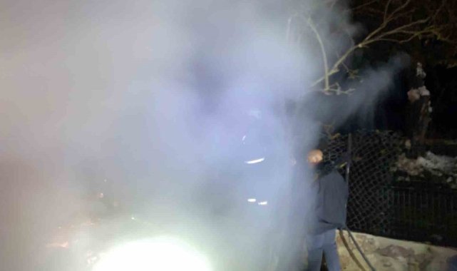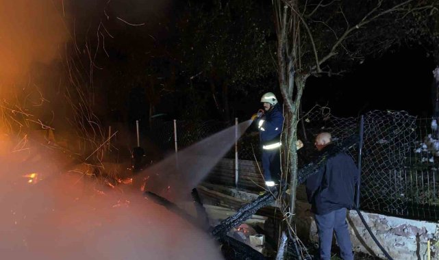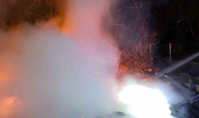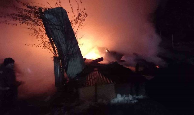 Artvin'in Şavşat ilçesi, Oba köyünde gece saatlerinde çıkan yangında samanlık kullanılamaz hale geldi.
