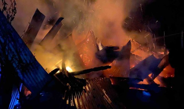 Artvin'de köyde çıkan yangında samanlık kullanılamaz hale geldi