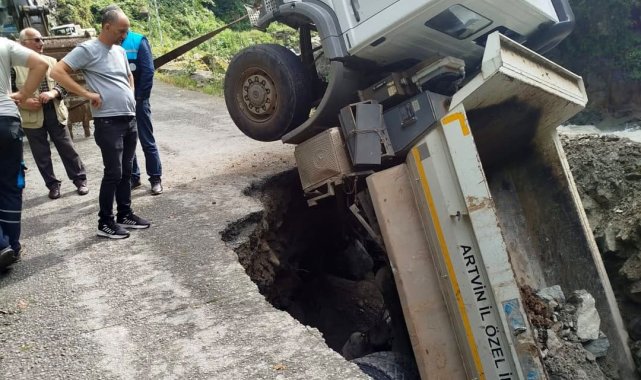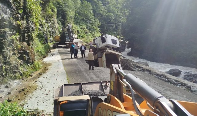 Artvin'de yol onarım sırasında kamyon göçüğe düştü: 1 yaralı