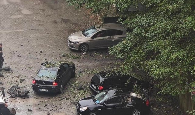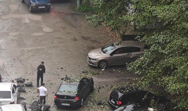 Artvin'in Hopa ilçesinde yamaçtan kopan kayalar park halindeki 7 araca hasar verdi