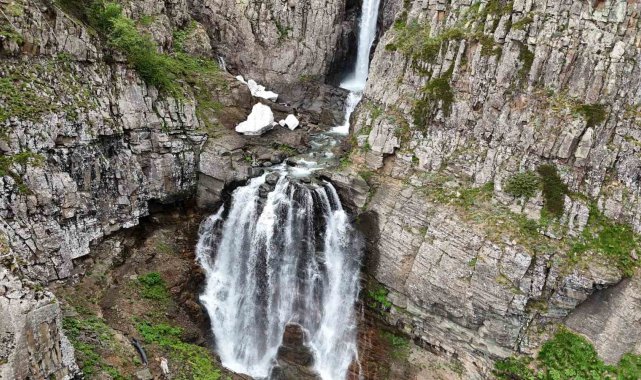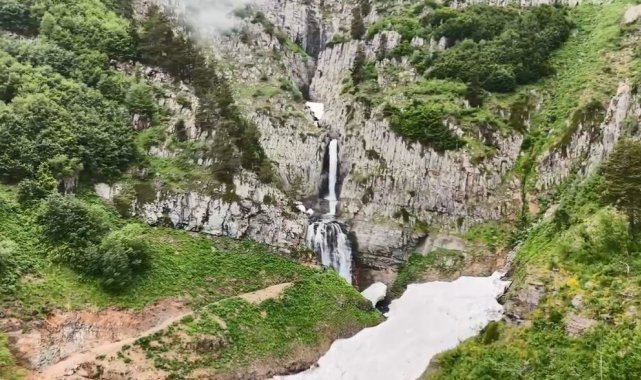 Artvin'in saklı güzelliği: Bazgiret Şelalesi en coşkulu döneminde