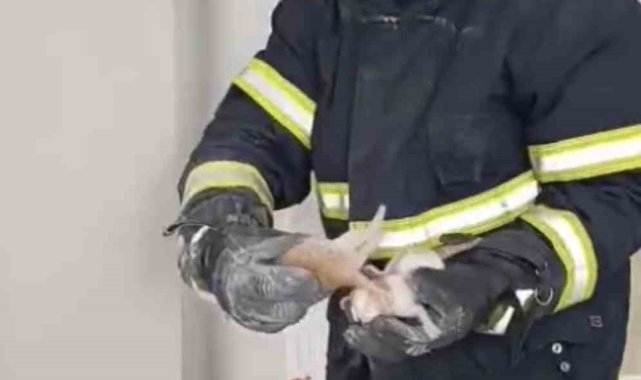 Asma tavanda sıkışan 4 yavru kedi kurtarıldı