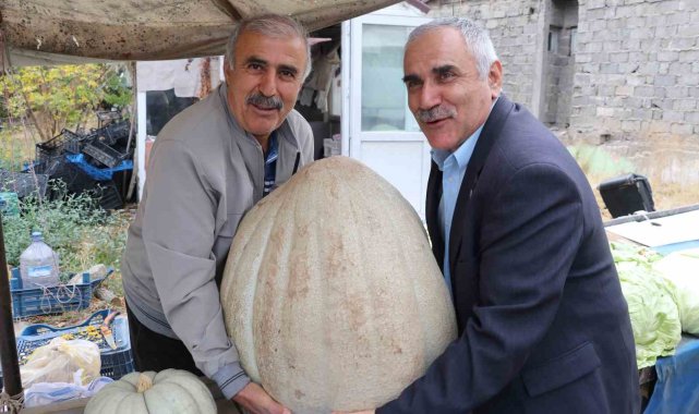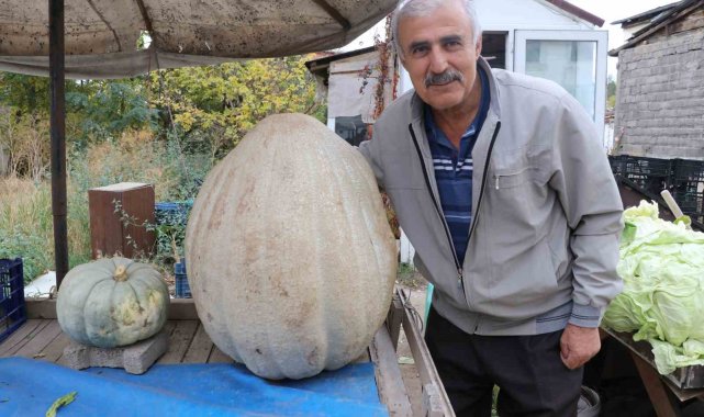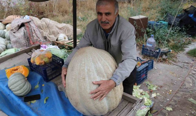Sivas'ta bir çiftçinin ata tohumundan yetiştirdiği 51 kilogramlık dev bal kabağı ilgi odağı oldu.
