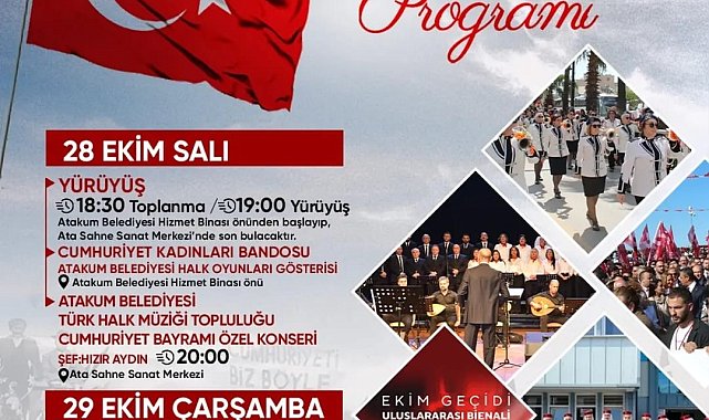 Samsun'un Atakum Belediyesi, Cumhuriyet'in 102. yıl dönümünü sanat, müzik ve yürüyüş etkinliklerinin yer aldığı özel programla kutlayacak. Etkinlikler kapsamında "Cumhuriyet Yürüyüşü", Türk halk müziği konseri ve bir ay sürecek "Uluslararası Ekim Geçidi Sergisi" düzenlenecek.