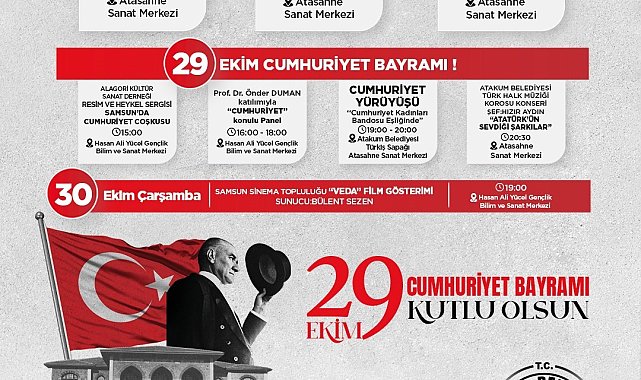 Samsun'un Atakum Belediyesi, 29 Ekim Cumhuriyet Bayramı'nı bir dizi etkinliğin yer aldığı özel bir programla kutlayacak.