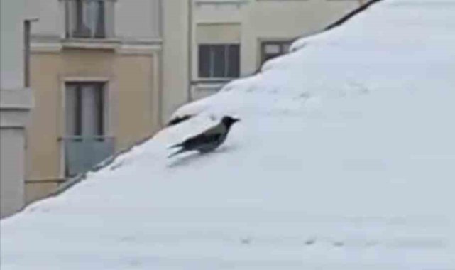 Ataşehir'de yoğun kar yağışı sonrası çatıda biriken kar üzerine konan karga, dakikalarca kar içerisinde yuvarlandı. Yüzleri gülümseten o anlar vatandaşın cep telefonu kamerasına yansıdı.