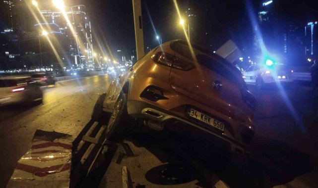 Ataşehir'de gece saatlerinde hızlı seyreden otomobil yol ayrımındaki bariyere girdi. Kazada 1'i ağır 3 kişi yaralandı.