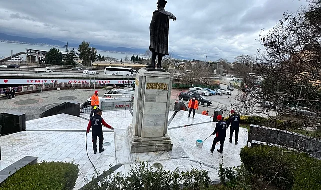 Kocaeli Büyükşehir, İzmit'in en önemli simgelerinden olan ve şehre değer katan Atatürk Heykeli'nin bakımını ve temizlik çalışmasını yaptı