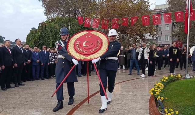 Türkiye Cumhuriyeti'nin kurucusu Gazi Mustafa Kemal Atatürk'ün 87. ölüm yıl dönümü dolayısıyla Tekirdağ'da da anıldı.Tören, sabah saatlerinde Tekirdağ Valiliği önündeki Atatürk Anıtı'na çelenk sunumuyla başladı. Valilik, Garnizon Komutanlığı adına çelenklerin sunulmasının ardından saat 09.05'te sirenler eşliğinde iki dakikalık saygı duruşunda bulunuldu, ardından İstiklal Marşı okundu.Programa, Tekirdağ Valisi Recep Soytürk, Tekirdağ Süleymanpaşa Kaymakamı Nedim Tunçer, Tekirdağ İl Emniyet Müdürü Ahmet Metin Turanlı, 8. Mekanize Piyade Tugay Komutanı Tuğgeneral Aytuğ Yörüyüş, il protokolü, siyasi parti temsilcileri, sivil toplum kuruluşlarının yöneticileri, öğretmenler, öğrenciler ve çok sayıda vatandaş katıldı.
