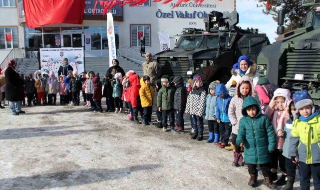 Atatürk Üniversitesi Özel Vakıf Okulları, "Tutum, Yatırım ve Türk Malları Haftası" etkinliklerini bu yıl "Yerli Üret, Yerli Tüket" sloganıyla daha anlamlı bir boyuta taşıdı.Yerli üretimin ve Türk mallarının tercih edilmesinin önemine dikkat çekmek amacıyla düzenlenen etkinlik, geleneksel kutlamaların ötesine geçerek öğrencilerde Milli Teknoloji Hamlesi bilincini oluşturmayı hedefledi.Atatürk Üniversitesi ev sahipliğinde, Özel Vakıf Okulları öncülüğünde ve Erzurum Valiliğinin destekleriyle düzenlenen etkinliğe Atatürk Üniversitesi Rektör Yardımcısı Prof. Dr. Hasan Türkez, Genel Sekreter Doç. Dr. Ufuk Okkay, Atatürk Üniversitesi Özel Vakıf Okulları yöneticileri, öğretmenler ve çok sayıda öğrenci ile veliler katıldı. Türk savunma sanayisinin yerli üretim araçlarının ve ekipmanlarının sergilendiği etkinlik, yerli malı haftası kutlamalarına farklı bir perspektif kazandırdı.Devrim ve Togg İlgi Odağı OlduEtkinlik alanında sergilenen yerli üretim zırhlı araçlar, polis ve jandarma ekipmanları ile Togg, ziyaretçilerin büyük beğenisini topladı. Ayrıca öğrencilerin geliştirdiği teknolojik projelerin tanıtıldığı stantlar büyük ilgi gördü. Görsel Sanatlar Öğretmeni Mahmut Ergül'ün iki günlük bir çalışma sonucu ortaya çıkardığı "Devrim ve Togg" temalı resim, katılımcıların hayranlıkla incelediği eserlerden biri oldu.Etkinlikte dikkat çeken bir diğer detay ise 9 yaşındaki ikiz kardeşler Esmanur ve Mehmet'in Erzurum bar kıyafetleri ile Nene Hatun konseptini başarıyla canlandırmaları oldu. Minik öğrencilerin bu sunumu, kültürel değerlerin teknolojiyle harmanlanarak nasıl korunabileceğini somut bir şekilde ortaya koydu.Yerli Ürünlerin Taşıdığı Önem AnlatıldıEtkinlik boyunca öğrenciler, sergilenen araçları ve teçhizatları yakından inceleme fırsatı bulurken, zaman zaman araçların içine binerek deneyim kazandılar. Bu tecrübe, öğrencilerin yerli üretim teknolojilere olan ilgisini artırmayı başardı. Etkinlikle ilgili açıklamalarda bulunan Atatürk Üniversitesi Özel Vakıf Okulları Müdürü Erdal Karagülle, klasik yerli malı haftası etkinliklerinden farklı bir konsept oluşturduklarını ifade belirterek: "Öğrencilerimize Milli Teknoloji Hamlesinin önemini anlatmak ve bu konuda bir farkındalık oluşturmak amacıyla böyle bir etkinlik düzenledik. Erzurum Valiliğimizin desteğiyle çocuklarımızın hafızalarında unutulmaz bir gün bıraktığımızı düşünüyorum" dedi.Unutulmaz Bir Eğitim DeneyimiProgram sonunda öğrenciler, yerli üretimin ve milli teknolojilerin ülkemizin geleceği için taşıdığı önemi bir kez daha anlamış olmanın mutluluğunu yaşadı. Teknolojik gelişmelerin yanı sıra kültürel değerlerin de vurgulandığı bu etkinlik, öğrencilere hem bilinç kazandırdı hem de ülkemize olan bağlılıklarını güçlendirdi. Atatürk Üniversitesi Özel Vakıf Okulları tarafından gerçekleştirilen bu anlamlı etkinlik, yalnızca bir kutlama değil, aynı zamanda milli değerlerin ve teknolojinin geleceğe taşınması adına önemli bir adım olarak değerlendirildi.