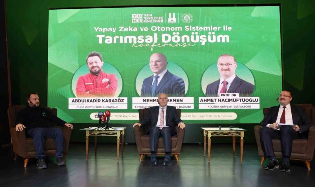Atatürk Üniversitesi ev sahipliğinde düzenlenen "Yapay Zekâ ve Otonom Sistemler ile Tarımsal Dönüşüm" konferansı; akademisyenler, sektör temsilcileri ve öğrencileri bir araya getirdi.Moderatörlüğünü Atatürk Üniversitesi Rektörü Prof. Dr. Ahmet Hacımüftüoğlu'nun yaptığı etkinlikte, Erzurum Büyükşehir Belediye Başkanı Mehmet Sekmen ve Tarım Teknolojileri Kümelenmesi (TÜME) Vakfı Yönetim Kurulu Başkanı Abdulkadir Karagöz, tarımda teknolojik devrimin yol haritasını çizdi.Rektör Hacımüftüoğlu: "Tarımda Dijital Dönüşümün Bilgi Üssü Olmayı Hedefliyoruz"15 Temmuz Milli İrade Salonunda düzenlenen programın açılışını yapan Rektör Prof. Dr. Ahmet Hacımüftüoğlu, tarımın 10 bin yıllık tarihindeki en büyük dönüşümü yaşadığını belirterek; artık tarlayı hisseden, veriyi okuyan ve geleceği modelleyen bir teknoloji kuşağında olduğumuzu vurguladı. Bu konferansı Erzurum'un geleceğine dair bir "niyet beyanı" olarak gördüklerini ifade eden Hacımüftüoğlu, Atatürk Üniversitesinin köklü akademik birikimiyle tarımda dijital dönüşümün bilgi üssü olmayı hedeflediğini belirtti.Erzurum'un zorlu iklim ve coğrafi koşullarının aslında bir avantaj olduğunu dile getiren Hacımüftüoğlu: "Buradaki sert koşullarda başarıyla çalışan bir teknoloji, dünyanın her yerinde çalışabilir. Erzurum, tarım teknolojileri için dünyanın en gerçekçi test sahasıdır" dedi. Özellikle hayvancılıkta sürü takip sistemleri ve yapay zekâ destekli erken uyarı modellerinin önemine değinen Rektör Hacımüftüoğlu, üniversitenin teknolojiyi üreten ve çiftçiyle buluşturan bir "köprü" rolü üstlendiğini kaydetti.Son olarak iklim değişikliği tehdidine dikkat çeken Hacımüftüoğlu, yapay zekânın iklim-tarım modellemelerinde hayati bir rol oynayacağını söyledi. Üniversitenin kapılarının tüm araştırmacı ve üreticilere açık olduğunu belirten Hacımüftüoğlu, bu bilimsel seferberliğin bölgeyi sadece tarım yapan değil, tarım teknolojisi ihraç eden bir merkeze dönüştüreceğinin altını çizdi.Başkan Sekmen: "Toprağa Yatırım, Bağımsızlığa Yatırımdır"Erzurum Büyükşehir Belediye Başkanı Mehmet Sekmen, konuşmasında Erzurum'u "hayvancılığın kalesi ve tarımın omurgası" olarak nitelendirdi. Dünyanın değiştiğini ve geleneksel yöntemlerin yerini veri odaklı sistemlere bıraktığını ifade eden Sekmen, yerel yönetim olarak üreticiyi teknolojiyle buluşturmayı milli bir görev olarak gördüklerini, gıda güvenliğinin artık savunma sanayii kadar stratejik bir mesele olduğunu vurguladı.Görev süresi boyunca Canlı Hayvan Borsası, Et Entegre Tesisleri ve fuar organizasyonlarıyla altyapıyı güçlendirdiklerini hatırlatan Başkan Sekmen: "Şimdi üretimi dijital teknoloji ile akıllandırma zamanı. Yapay zekâ; daha az maliyet, daha fazla verim ve suyun israf edilmemesi demektir" dedi. Başkan Sekmen, bu teknolojik dönüşümün gençlerin tarımdan uzaklaşmasını engelleyeceğini ve meraları birer teknoloji üssüne çevireceğini belirtti.Gençlere ve girişimcilere çağrıda bulunan Sekmen, tarımın artık sadece sabanla değil, yazılım ve mühendislikle şekillendiğini söyledi. Üniversite ile iş birliğini her alanda güçlendireceklerini belirten Sekmen: "Hedefimiz Erzurum'u tarım teknolojilerinin merkezi yapmaktır. Toprağa ve teknolojiye yapılan yatırım, ülkemizin tam bağımsızlık vizyonuna hizmet edecektir" diyerek sözlerini tamamladı.TÜME Vakfı Başkanı Karagöz: "Otonom Sistemlerle Tarımda Verimlilik Devrimi Başlıyor"Tarım Teknolojileri Kümelenmesi (TÜME) Yönetim Kurulu Başkanı Abdulkadir Karagöz, sunumuna dünya genelinde artan gıda talebi ile azalan su ve toprak kaynakları arasındaki kritik dengeye dikkat çekerek başladı. Mevcut üretim baskısının ciddi sürdürülebilirlik sorunlarını beraberinde getirdiğini ifade eden Karagöz: "Çözüm, geleneksel yöntemlerde değil; daha az kaynakla daha fazla ve daha sağlıklı üretim yapmamızı sağlayacak yapay zekâ destekli otonom işletmelerdedir. Tarım ve hayvancılıkta yeni bir dönemin kapısını aralıyoruz" dedi.Türkiye'nin özellikle süt ve et üretiminde bir sıçrama yapması gerektiğini vurgulayan Karagöz, bunun ancak teknoloji kullanımı, ölçek ekonomisi ve genetik ıslah üçgeniyle mümkün olabileceğini belirtti. Erzurum'un sahip olduğu geniş mera alanları ve hayvan varlığının, teknoloji temelli bir dönüşümle ulusal bir güç haline gelebileceğini söyleyen Karagöz, TÜME ekosistemi kapsamında geliştirilen; otonom sağım sistemleri, sürü yönetim yazılımları, görüntü işleme teknolojileri, akıllı ahır modelleri ve otonom hasat çözümlerinin sahada uygulanmaya hazır olduğunu müjdeledi.Genç girişimcilere ve öğrencilere özel bir parantez açan Karagöz, onları bu dijital dönüşümün sadece izleyicisi değil, bizzat mutfağındaki aktörleri olmaya davet etti. TEKNOFEST Tarım Teknolojileri yarışmalarının bu anlamda büyük bir fırsat olduğunu hatırlatarak; arz güvenliği, iklim-çevre dostu projeler ve güvenilir gıda temalı çalışmalara odaklanılması gerektiğini belirtti. Karagöz, konuşmasını üniversitelerle iş birliği içerisinde hayata geçirilecek olan "Yapay Zekâya Dayalı Otonom Eğitim Çiftlikleri" modelinin, teorik bilgiyi sahada kazanca dönüştüreceği vizyonuyla tamamladı.Soru-cevap bölümüyle devam eden konferans, hatıra fotoğrafının çekilmesinin ardından sona erdi.