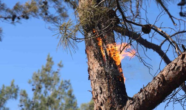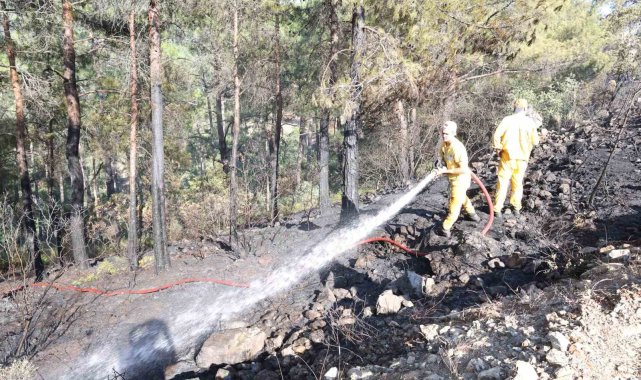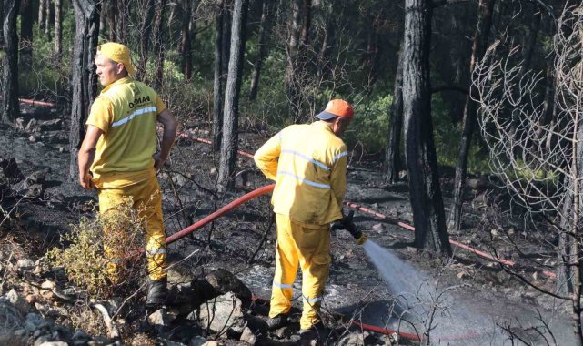 Muğla'nın Marmaris ilçesinde çıkan orman yangını, ekiplerin havadan ve karadan hızlı müdahalesiyle kontrol altına alındı.Edinilen bilgiye göre, Yeşilbelde Mahallesi ormanlık alanda henüz bilinmeyen bir nedenle yangın çıktı. Yangın ihbarı sonrası bölgeye Muğla Orman Bölge Müdürlüğü'ne ait çok sayıda kara ve hava aracı sevk edildi. Ekiplerin yangın bölgesinde havadan ve karadan hızlı müdahalesi başladı. Alevlere 13 helikopter, 2 uçakla havadan, 20 arazöz, onlarca söndürme ekibi ve iş makineleri ile karadan müdahale edildi. Söndürme çalışmalarına vatandaşlar da destek verdi. Söndürme ekiplerinin yangının ilk saatlerinden itibaren cansiperhane çalışmaları sonrasında alevler kontrol altına alındı. Ekiplerin bölgede soğutma çalışmalarının devam ettiği öğrenilirken, yangında 2 dekar ormanlık alanın zarar gördüğü öğrenildi."Korkulacak bir durum kalmadı"Marmaris Kaymakamı Nurullah Kaya, yangın bölgesine gelerek çalışmaları yakından takip etti. Kaymakam Kaya, yaptığı açıklamada, "Ekiplerimiz çok hızlı bir şekilde mücadele ettiler. Hava ekiplerimiz müdahale etti. Korkulacak bir durum kalmadı. Ben emeği geçen herkese teşekkür ediyorum" dedi.