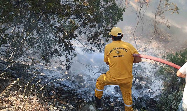 Muğla'nın Marmaris ilçesinde çıkan orman yangını, ekiplerin havadan ve karadan hızlı müdahalesiyle kontrol altına alındı.