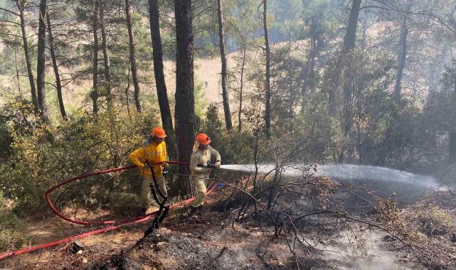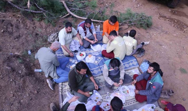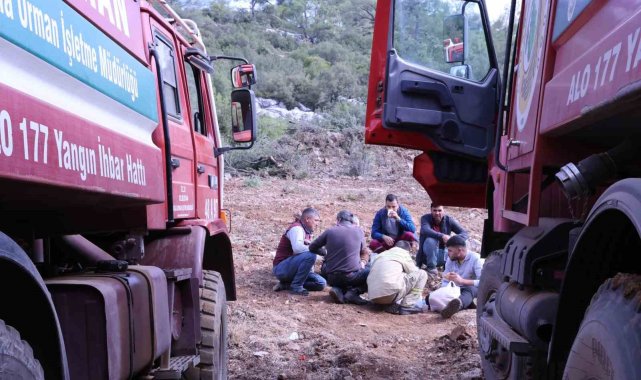 Muğla'nın Ula ilçesinde çıkan orman yangınına gece boyunca müdahale eden ateş savaşçıları, yangının önünü kesmeyi başardı. Sabahın ilk ışıklarıyla mola veren ve yanlarındaki domates ve salatalıklar ile mütevazi bir kahvaltı yapan ekiplerin fedakarlıkları takdir topladı.Gökova Körfezi Turnalı bölgesinde başlayan yangının söndürme çalışmaları üçüncü güne girerken, gündüz sarp kayalıklarda yer yer yükselen dumanlara sadece havadan müdahale edilebiliyor. Gökova Körfezi'ne hakim tepelerde kayalıklarda devam eden yangına gece boyunca aralıksız müdahale eden ateş savaşçıları ise alevlerin önlenmesi için yoğun çaba sarf etti. Kıran ve Sarnıç mahallerinin kesiştiği noktada etkin müdahale gerçekleştiren ekipler, alevlerin diğer bölgelere sıçramasını önleyerek, önünü kesmeyi başardı. Sabahın ilk ışıklarına kadar aralıksız mücadele eden ateş savaşçıları, günün ağarması ve havadan müdahalenin başlamasıyla sabah saatlerinde kısa bir kahvaltı molası verdi. Alevlerin önünü kestikleri bölgede mola veren ekiplerin, mütevazi kahvaltısı ise dikkat çekti. Yanlarında bulunan domates, peynir ve salatalıklardan oluşan bir kahvaltı yapan ateş savaşçılarının fedakarlıkları ise takdir topladı. Bölgede havadan ve karadan söndürme çalışmaları hız kesmeden sürüyor.