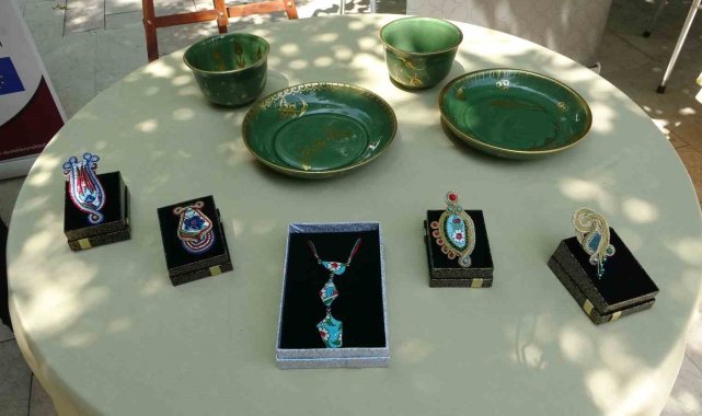 Kütahya Olgunlaşma Enstitüsü'nde atık çiniler ve cam şişeler sanatsal ürünlere dönüştürülüyor.