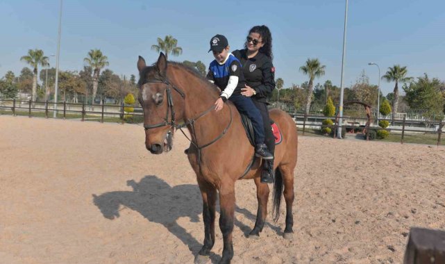 Adana'da ilkokul ikinci sınıf öğrencisi Poyraz atlı polis olma hayaliyle polisleri ve kendisini atın üzerinde çizdi. Adana polisi Poyraz'ın bu hayalini gerçeğe dönüştürerek üniforma giydirip ata bindirip unutmayacağı bir an yaşattı.