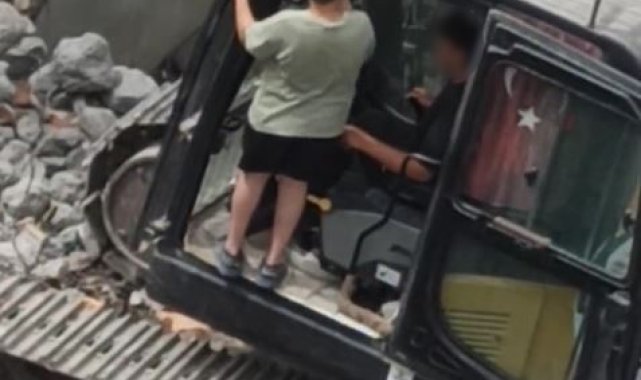 Avcılar'da 2 çocuk ağır tonajlı kepçeyi hareket ettirdi