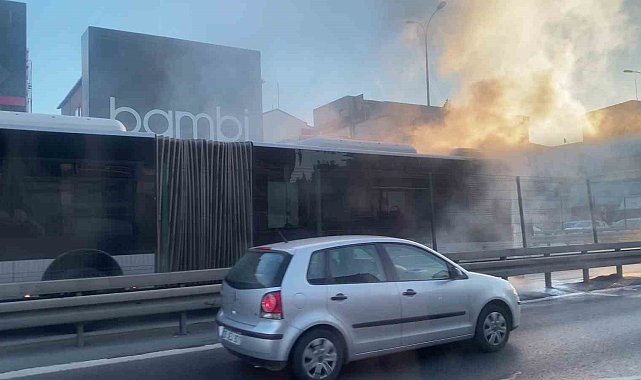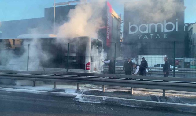 İstanbul Avcılar metrobüs durağında, bir metrobüsün motor bölümünden yükselen dumanlar paniğe neden oldu. Yolcular araçtan tahliye edilirken, kontrol altına alınan yangın anları çevredeki vatandaşların cep telefonu kamerasına yansıdı.İstanbul'da sabah saatlerinde Avcılar metrobüs durağında, bir metrobüsün motor bölümünde dumanlar çıkmaya başladı. Henüz bilinmeyen bir nedenle çıkan dumanları gören vatandaşlar, durumu durakta bulunan güvenlik görevlilerine ve metrobüs şoförüne bildirdi. Vatandaşlar metrobüsten tahliye edilirken, otobüste ve durakta bulunan yangın söndürme tüpleriyle görevliler olaya müdahale etti. Küçük çaplı yangın görevliler tarafından söndürüldü. Olay yerine gelen itfaiye ekiplerinin soğutma çalışması yaptığı öğrenildi. Yangın sonrasında metrobüs güvenli alana alınırken, dumanların yükseldiği anlar cep telefonu kamerasına yansıdı.