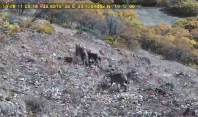 Tunceli'de nesli tehdit altında olduğu için IUCN kırmızı listesinde yer alan vaşak, önce avladığı tavşanı götürürken ardından da 2 yavrusuyla birlikte fotokapana yansıdı.