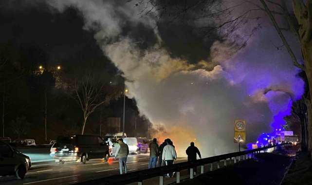 Avrupa Otoyolu'nda araç alev topuna döndü, trafik yoğunluğu oluştu