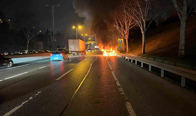 İstanbul Avrupa Otoyolu Bağcılar mevkiinde seyir halindeki hafif ticari araç alev alev yandı. Yangın sebebiyle trafik yoğunluğu oluştu.Olay, saat 22.40 sıralarında Avrupa Otoyolu Bağcılar mevkiinde meydana geldi. İddiaya göre, Ankara istikametine giden Ramazan Yayla kontrolündeki 34 FKM 17 plakalı hafif ticari aracın motoru yanmaya başladı. Aracı emniyet şeridine çeken Yayla ve eşi araçtan çıkarken, alevler kısa sürede büyüdü. Yangın sebebiyle otoyolda trafik yoğunluğu oluştu. Yanan araç alev topuna dönerken, ihbar üzerine olay yerine polis, itfaiye ve sağlık ekipleri sevk edildi. Patlamaların meydana geldiği araç itfaiye ekiplerinin müdahalesi ile söndürülürken, kullanılamaz hale geldi. Olayda ölen ya da yaralanan olmadı.