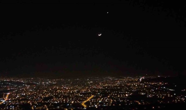 Kırıkkale semalarında hilal şeklindeki Ay ve Venüs gezegeni, gökyüzünde etkileyici bir manzara oluşturdu.