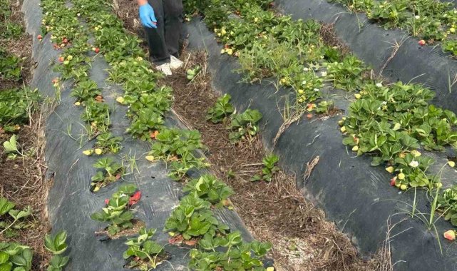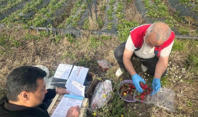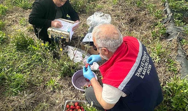 Önemli tarım kentlerinden olan Aydın'ın Köşk ilçesinde, hasat öncesi çilek tarlalarında pestisit tespiti için numune alımları yapıldı.
