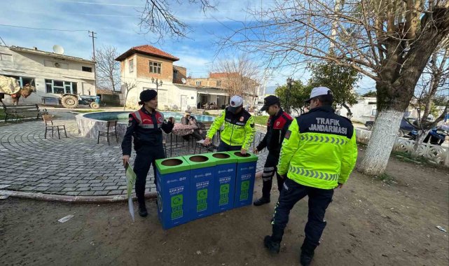 Aydın'ın Çine ilçesinde jandarma ekiplerince gerçekleştirilen farkındalık çalışması ile geri dönüşüm kutusu bırakılan kahvehaneler, geri dönüşüm merkezi olacak.
