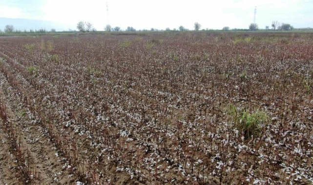 Aydın'ın İncirliova ilçesinde dün etkili olan dolu yağışı, pamuk tarlalarında zarara yol açtı.Türkiye'nin önemli pamuk üretim merkezlerinden olan Aydın'ın İncirliova ilçesinde dün akşam etkili olan dolu, pamuk tarlalarını vurdu. Aydın genelinde yaşanan kuraklık nedeniyle zor şartlar altında pamuk yetiştiren Sınırteke Mahallesi üreticileri, hasat öncesinde yaşanan dolu yağışı üzdü. Ürünlerinin yaklaşık yüzde 80'ini kaybettiklerini söyleyen pamuk üreticileri, zararlarının karşılanması için İlçe Tarım Müdürlüğüne başvuru yaptıklarını belirtti."Zorla yetiştirilen pamuk hasat edilemeyecek duruma geldi"İncirliova Ziraat Odası Başkanı Ali Oğuzhan Ülgüdür, "Sınırteke Mahallemizde çok kuvvetli bir dolu yağışı meydana geldi. Dolunun büyüklüğü neredeyse bir ceviz kadardı. Onun için mahallemizde çok büyük bir zarar meydana geldi. Sınırteke Mahallemizde 20 bin dönüm civarında tarım arazimiz mevcut. Bu arazinin yaklaşık 6 bin dönümü doludan ve yağmurdan etkilenmiş durumda. Özellikle dolu yağışı pamukların yüzde 80'ine zarar vermiş, ancak üzerinde yüzde 20 civarında pamuk kalan arazilerimiz var. Bazı arazilerimizde yüzde 100 oranında zarar var. Bu aynı şekilde yonca, mısır, zeytin gibi ürünlerimizi de etkilemiş vaziyette. Çiftçimiz zaten zor zahmet bu ürünü yetiştirmişti. Tam hasat yapacağı zamanda böyle bir afetle karşılaşınca zaten zorla yetiştirmiş olduğu ürünü hiç hasat edemeyecek duruma geldi" diye konuştu."Her sene bin bir umutlarla toprağımızı sürüyoruz"Afetten dolayı mağdur olduklarını ifade eden pamuk üreticisi Nihat Erdoğdu, "200 dekar pamuğumuz vardı. Bunun yaklaşık 100 dekarını hasat etmiştik. 100 dekar alanımız doludan, fırtınadan zarar gördü. Yani hasat edilemeyecek şekle geldi. Bin bir emekle yetiştirdiğimiz ürünlerimizi hasat edemedik. Afetten dolayı mağdur olduk" dedi.Her yıl umutlarla topraklarını işlediklerini ifade eden üretici Özcan Erdoğdu, "Her sene bahar dönemi geldiğinde içimiz kıpırdıyor toprakla karnımız doyduğu için. Her sene toprağımızı sürüyoruz bin bir umutlarla. Mahsullerimizi yetiştiriyoruz. Bu bölgemizde aktarmalı sularla zor zahmetle mahsullümüzü bu hale getirdik. Şu an mahsulümüzün geldiği durum bu" ifadelerini kullandı.Selahattin Gümel ise, "150 dönüm pamuk ektim ama büyük umutlarla ektiğimiz pamuk maalesef yerde kaldı" dedi.