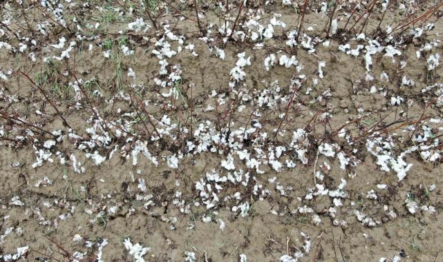Aydın'ın İncirliova ilçesinde dün etkili olan dolu yağışı, pamuk tarlalarında zarara yol açtı.