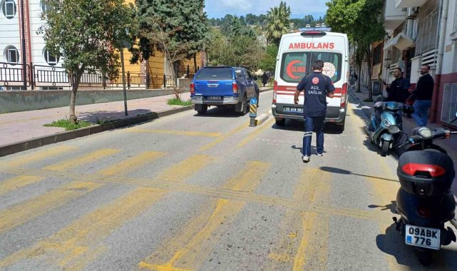 Aydın'ın Efeler ilçesinde seyir halindeyken karşıya geçmek isteyen bir başka motoru görerek panik freni yapan kurye, motosikletin kayması sonucu yaralandı.