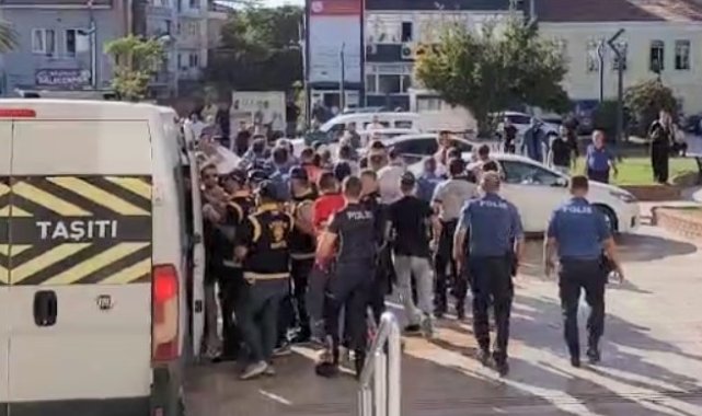 Aydın'ın Efeler ilçesinde iddiaya göre bir şahsı darp edip zorla senet imzalattıran 5 şüpheli tutuklanarak cezaevine gönderildi. Güvenlik önlemlerinin yetersiz kaldığı adliye önünde polis ekipleri taşkınlık yapan tutuklu yakınlarını bölgeden uzaklaştırmada zor anlar yaşadı.