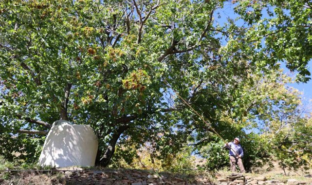 Türkiye'nin en fazla kestane üretiminin yapıldığı Aydın'da hasat sezonunda sona gelinirken, yaşanan kuraklığa rağmen bu yıl kestanede rekolte ve kalitenin iyi olması üreticinin yüzünü güldürdü.Önemli kestane üretim merkezlerinden olan Aydın'ın dağlarında kestane sezonunda sona gelindi. Dağlarda üreticiler adeta zamanla yarışırken, yüksekliği yer yer 60-70 metreye kadar ulaşan kestane ağaçlarına tırmanan erkekler tarafından hasadı yapılan kestaneler, kadınlar tarafından toplanıyor. Dökek alanı adı verilen yerlerde olgunlaşması beklenen kestaneler daha sonra dikenlerinden ayıklanarak ihracata hazırlanıyor. Yaşanan kuraklığa rağmen bu yıl kestanede rekolte ve kalitenin iyi olması üreticilerin yüzünü güldürürken, kestane üreticileri hem fiyattan hem de rekolte ve kaliteden memnun olduklarını belirttiler. Hafta içi okula giden çocuklar da hafta sonları aile büyüklerine yardım ederek kestane hasadı yapıyor.Yaklaşık 50 yıldır kestane üreticiliği yapan Ramazan Tosun, "Sezon çok güzel gidiyor. Allah izin verirse artık hasadı bitiriyoruz. Fiyatlar şu an için normal. Allah bereket versin" diyerek bu yıl havaların kurak gitmesine rağmen son yağışlarla kestanenin gelişimini güzel bir şekilde tamamladığını belirtti.Yüksek ağaçlara adeta bir komando gibi tırmanan kestane çırpıcılarından Galip Tosun ise özellikle ağaçlardan kaymamak için lastik ayakkabı kullandıklarını ifade ederek "Zor bir iş tabi ama Allah bereket versin yavaş yavaş sezonun sonuna geliyoruz. Allah tekrarını göstersin, hatasız kazasız yedirmeyi nasip etsin Allah" diyerek bu yıl da hasadın sağ salim tamamlandığını söyledi.