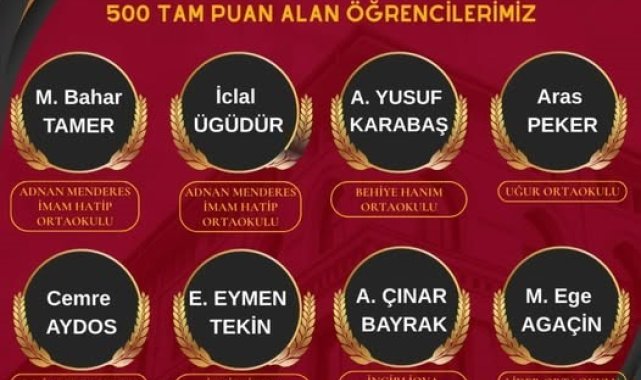 Aydın LGS'de gururlandırdı: 8 öğrenci tam puan aldı