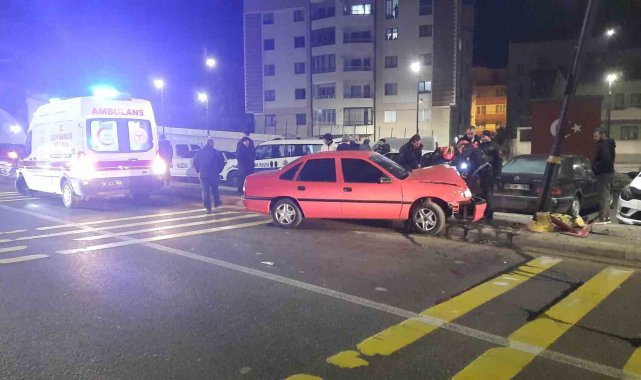 Aydınlatma direğine çarpan otomobilin sürücüsü yaralandı