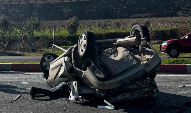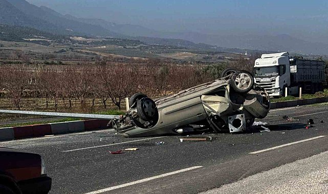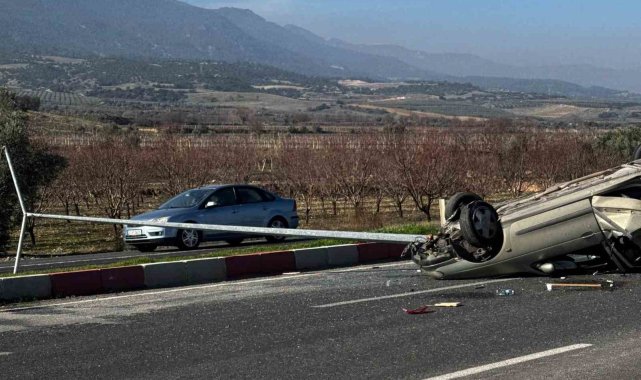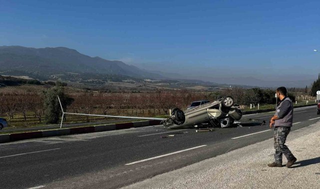 Denizli'nin Buldan ilçesinde direksiyon hakimiyetini kaybeden otomobil sürücüsü önce refüjde bulunan aydınlatma direğini devirdi ardından takla attı. Kaza neticesinde hurda yığınına dönen otomobil kullanılamaz hale gelirken otomobilde bulunan 2 kişi yaralandı.