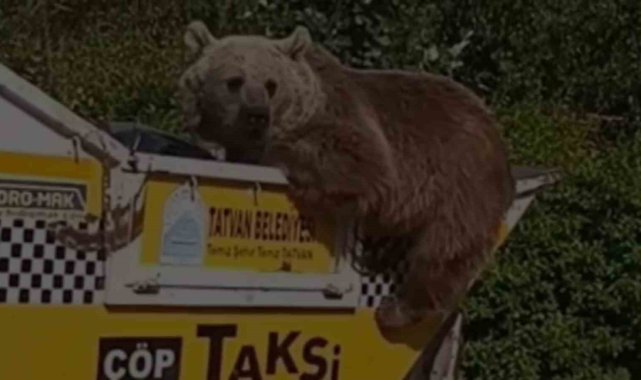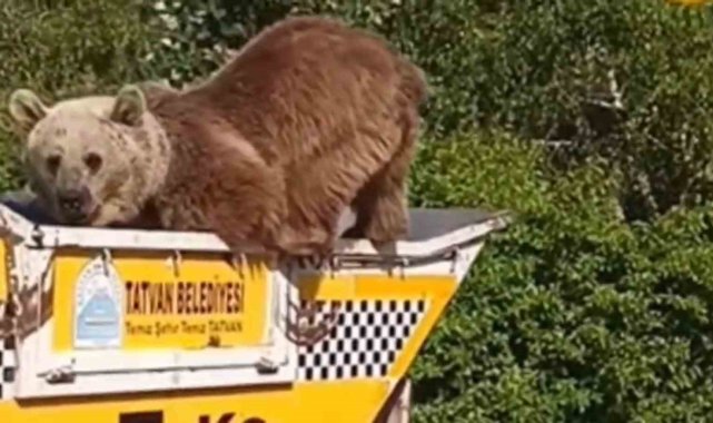 Bitlis'teki Nemrut Krater Gölü civarında aç kalan bir ayı, çöp kamyoneti kasasında yiyecek ararken görüntülendi.Bitlis'in Tatvan, Ahlat ve Güroymak ilçeleri arasında bulunan 2250 rakımlı Nemrut Krater Gölü, son yıllarda elle beslenen yavru ayılarla sık sık gündeme geliyor. Uzmanların sık sık uyarı yaptığı ayılar, bölgede piknik yapan vatandaşların arasında dolaşmaya başladı. Bölgedeki çöpleri almaya giden çöp kamyonunun üstüne çıkan bir ayının yiyecek arayışı ise bir vatandaşın cep telefonu kamerasına yansıdı. Araç üstünde yiyecek arayışını sürdüren ayı, bir süre sonra gözden kayboldu.