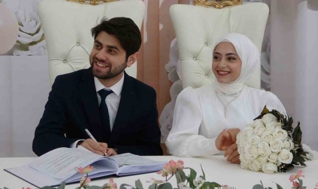 Bilecik'te evlenmek için aylar öncesinden '05.05.2025' tarihini tercih eden çiftler, nikah salonunda yoğunluk oluşturdu.Evlilik tarihini unutulmaz hale getirmek isteyen çiftler, aylar öncesinden '05.05.2025' tarihini tercih etti. Bilecik'te evlenmek için 3 adet 5 rakamının bir araya gelmesini bekleyen 14 çift, Şeyh Edebali Kültür ve Kongre Merkezinde yoğunluk oluşturdu.Nikahı kıyılan Melek Kuşçu, Denizlili olduğunu anlatarak, "Burada hastanede çalışıyorum. Üç yıldır buradayım ve 3 yıldır da eşimle sevgiliyim. Bugünü özel bir gün olarak seçtik. 05.05.2025 unutmasın diye evlendik mutluyum" dedi."Ocak ayında bu tarihi aldık"Melek Kuşçu ile evlenen Sabri Anıl Özen, "Melek ile tanıştığımız günden beri her günün bir önemi oldu. Bu evlenme tarihini almak için geçen Kasım ayında başvurduk ve Ocak ayının 2'sinde bu tarihi aldık. Çok mutluyuz. Bazı günler vardır kişiye anlam katan, bazı günler vardır o kişilerle anlam kazanan. Hem bize anlam katacak, hem de bizimle anlam kazanacak bir gün seçtik, mutluyuz" dedi."20 dakika ara ile nikâh sürelerini belirledik kendilerine mutluluklar diliyorum"Nikâh Memuru Rahim Kök ise, "Bugün malum 05.05.2025 tarihinde öncesinde bizlere başvuruda bulanan 14 çiftimizin nikah akdini gerçekleştiriyoruz. Burada nikah yoğunluğumuz olduğundan dolayı kendilerine 20 dakika ara ile nikah sürelerini belirledik, kendilerine mutluluklar diliyorum" dedi."14 çiftimizin nikahını kıydık"Diğer bir Nikâh Memuru Mine Özgür Selen ise, 05.05.2025'in özel bir tılsımın özel olması sebebiyle tercih edilen bir tarih olduğunu anlatarak, "O yüzden de 14 tane çiftimizin nikahını kıydık. Mutluluklar diliyoruz. İnşallah bir ömür boyu mutlu olurlar" dedi.