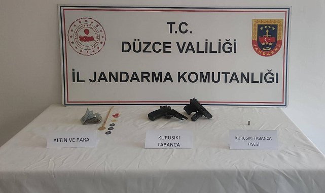 DÜZCE(İHA) – Düzce'nin Yığılca ilçesinde 2 ayrı evi soyan hırsızların aynı yöntemi kullandığını belirleyen ve 96 saatlik kamera kaydı izleyerek, şahısların kimliğini tespit eden jandarma ekipleri 3 kişiyi yakalayarak gözaltına aldı.Yığılca ilçesi Köseler ve Gökçeağaç köylerinde art arda meydana gelen hırsızlık olayları ile ilgili olarak vatandaşların şikayetleri üzerine harekete geçen Düzce İl Jandarma Komutanlığı ekipleri, yaptıkları incelemede evlerin aynı yöntemle soyulduğunu belirledi. Bölgede bulunan güvenlik kameralarını inceleyen jandarma ekipleri, 96 saatlik kamera görüntüleri sonucunda 3 kişiyi tespit etti. Şahısların ikametlerinde yapılan aramada 1 altın zincir, 1 adet 5'i bir yerde altın, 3 adet gram altın, 1 adet yarım altın, 1 adet 0,25 gram altın, 1 adet alyans yüzük, 2 adet kurusıkı tabanca, 1 adet kurusıkı tabanca fişeği ve bin 485 lira nakit para ele geçirildi.Şahıslar jandarma tarafından gözaltına alındı.