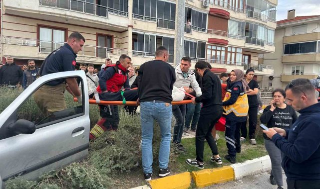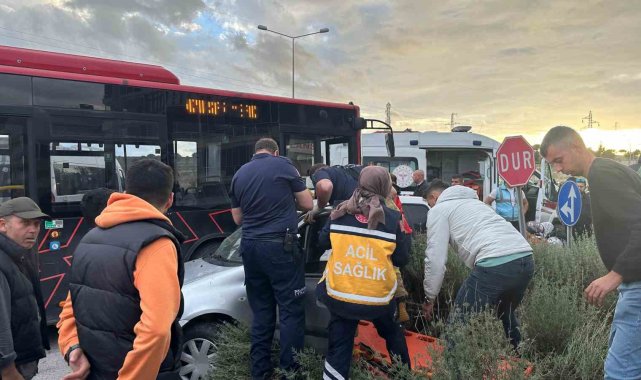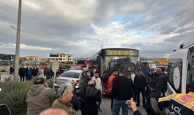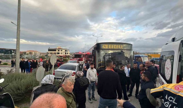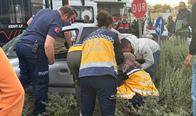 Ayvalık'ta belediye otobüsü ile otomobil çarpıştı: 2 yaralı