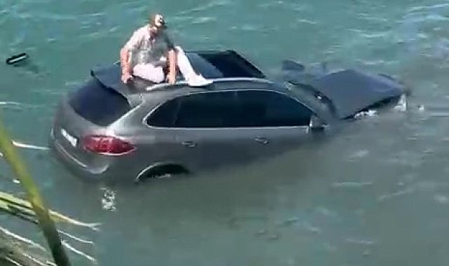 Balıkesir'in Ayvalık ilçesinde sahil yolunda bir otomobil kontrolden çıkarak denize uçtu. Kazada aracın sürücüsü denizin içinde batmakta olan otomobilin üzerinde dakikalarca kurtarılmayı bekledi. Sürücü, çevredeki balıkçı tekneleri tarafından kurtarıldı.Edinilen bilgiye göre, 61 AIZ 6107 plakalı otomobil, tek yönlü yolda kontrolden çıkarak önce bir elektrik direğine çarptı, ardından denize uçtu. Araç sürücüsü, batmakta olan aracın sunroofundan çıkmayı başararak otomobilin tavanına çıktı. Dakikalarca batan aracın üzerinde yardım bekleyen sürücü, çevredeki balıkçıların müdahalesiyle tekneye alındı.Olay yerine gelen sağlık ekipleri, sürücüye ilk müdahaleyi yaptıktan sonra tedbir amaçlı hastaneye sevk etti. Polis ekipleri ise olayla ilgili inceleme başlattı.